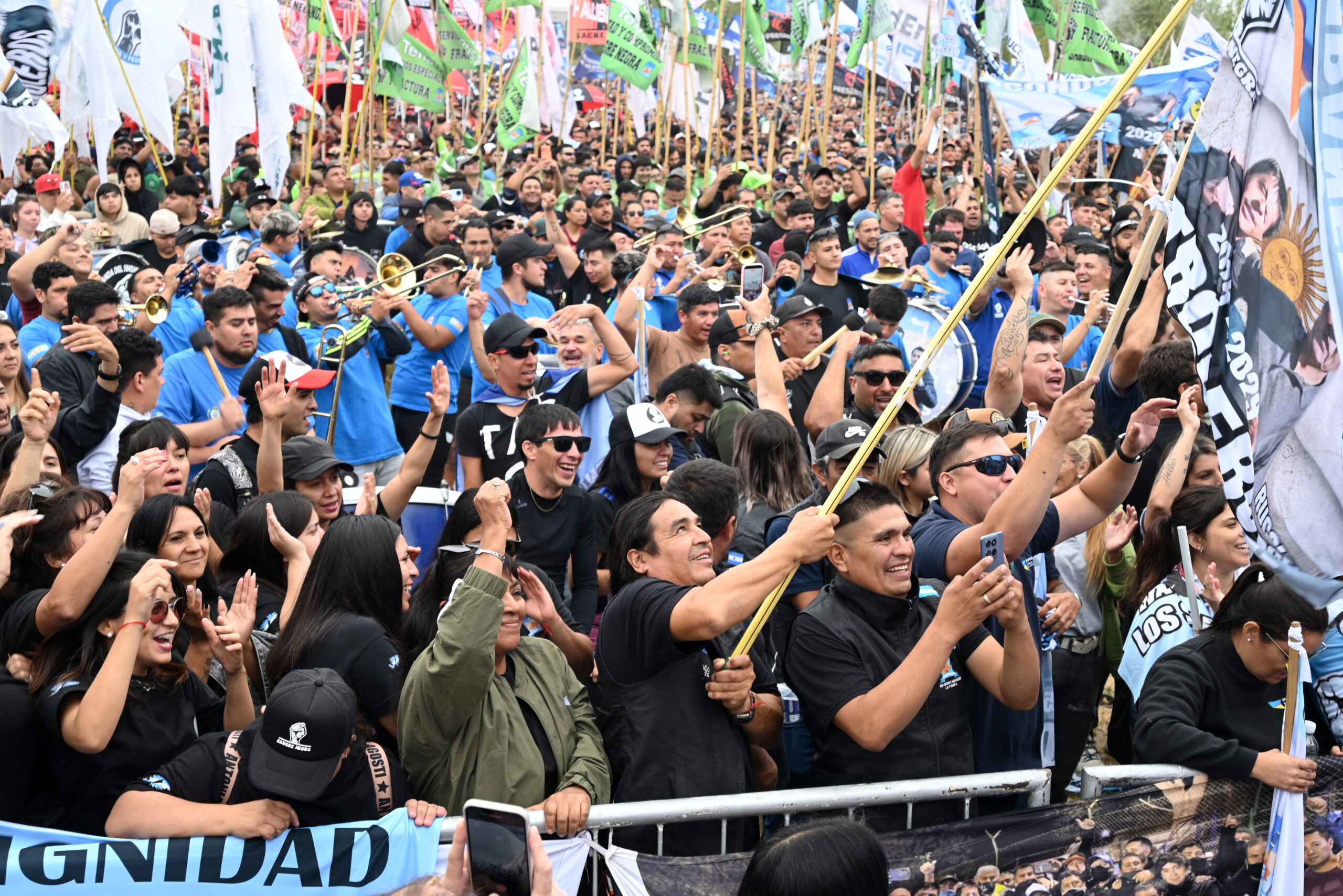 En otro tramo de su discurso, el secretario general fue enfático al rechazar cualquier intento de avanzar con una reforma laboral que afecte derechos adquiridos. “El riesgo empresarial no puede recaer sobre el lomo de los trabajadores. No vamos a aceptar multiplicidad de tareas, banco de horas ni pérdida de condiciones laborales”, advirtió.